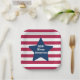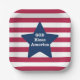 Square Paper Plates printed with God Bless America Red White And Blue lettering and stripes artwork design by TheFabricSeal at Zazzle.com #ZazzleMade TheFabricSeal©️Original.