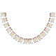 Golden caps on a white marble background, with pink (and white) orchids on the upper border , with 2 golden crosses between the words. The message is "God Bless" followed by a 6 letters name that you should change letter by letter (the default is Sophia).
