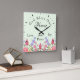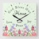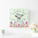 God Bless Our Home Floral Wildflowers Green Square Wall Clock
