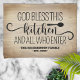 Welcome all your guests with this custom kitchen towel featuring a fun greeting and your family name. "God bless our kitchen and all who enter".