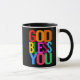 God Bless You stylized, elegant text. Each letter of an individual colour. Positive, Christian, cheering coffee mug for anyone. You can transfer this design to another product, just use the option hereinafter. Have fun, buy one, enjoy, stay safe, and be happy!