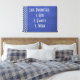 God Family Work Order Quote Canvas Print with a midnight blue background and grey chevron stripe accents. What comes first?