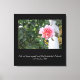 Wrapped canvas with photo of a pink rose by a statue and with a famous quote by J.W. Goethe, "I do not know myself, and God forbid that I should" (Conversations with Eckermann, 10 Apr 1829). If you like the image of the pink rose and statue but prefer a different quote, you can easily customize this canvas by deleting the text and writing your own using some of the nice fonts Zazzle provides. If you like the Goethe quote but prefer a different photo, note that I have used this text with other photos as well.