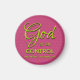 Simple, modern CHRISTIAN MAGNET with inspirational reminder GOD IS IN CONTROL AND HE HAS THE FINAL SAY. The colour scheme is fuchsia pink with background tiled pattern and lime green typography. Ideal gift for Mother's Day, Christmas, Easter, Birthdays and throughout the year.