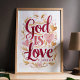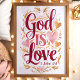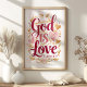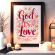 God is Love Pink and Gold Christian Wall Art