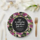 Blush pink and purple watercolor floral on black Christian Bible verse graduation party paper plates personalized with your name, school name (high school or college) and graduation year. Text says, "God is within her she will not fail. Psalm 46:5"