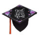 Super cute cap topper with Original calligraphy by Joy Kelley on a black background adorned with watercolor flowers. Personalize with your name and class year.