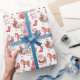 This fun Scandinavian style Christmas wrapping paper has images from days gone by. Mostly in red and white, the images include a sled pulled by dogs, a sleigh, a Christmas tree, a decorated horse, a heart, snowflakes, and a stocking. The text in red says "God Jul". Fun to celebrate Christmas the old fashioned way!