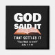 Stylish GOD SAID IT Christian magnet with CUSTOMIZABLE TEXT for men, women and children of all ages. The design shows bold typography that reads GOD SAID IT and THAT SETTLES IT (intentionally omitting the popular I BELIEVE IT), plus the Bible quote based on John 17:17 which says "Your Word is truth". This quote is CUSTOMIZABLE so you can replace it with your name or other text (or delete). This Christian magnet would make a great favour gift for new believers, Bible study groups and Christians of all ages who love the truth of God's Word. Also ideal for Christmas, Easter, baptisms, ordinations, evangelism outreaches and church favour giveaways.