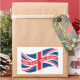 The Union Jack flag in red, white and blue and the words God Save the Queen across it. Wear your support of the British monarchy!