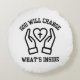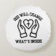 This round pillow design features a yearbook solid print font with black letters displaying the phrase “God Will Change What's Inside” with a heart plus cross inside of set of praying hand icon in this faith based bible theme. This pillow is made with high quality fabric our pillows are soft and wrinkle-free the cover is machine washable.