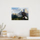 Bald eagle perched on a background of mountain landscape with Scripture verse from the Old Testament book of Psalms. Bible art for your home or office. Makes a perfect gift for a pastor, minister, or Sunday School teacher. From the Christian Faith Gift Shop. Biblical verse reads "God will cover you with his wings. Under the feathers of His wings you will find safety, He is faithful."
