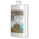 The product is a good size and came exactly as it was pictured. The lid is not attached to the flask, which could be dangerous on drunken nights... The print came out surprisingly well and looks very sharp. Would definitely recommend.