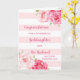Congratulations on your wedding day card for goddaughter and husband with pink and white stripes and watercolor pink flowers, and sentimental verse.