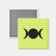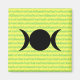 Goddess names- Isis, Astarte, Diana, Hecate, Demeter, Kali, Inanna- are repeated in the background. Their names are in a light green font over a pale, yellow background. In front is the Triple Goddess symbol