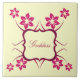 Goddess Floral Customizable Tile in dark pink featuring a lovely swirl bracket surrounded by cascades of feminine flowers. This pretty tile would add a girly touch to any decor and would make a lovely gift to any female friend or relative. This product may be customized to suit your personal tastes. Change the text, fonts, and font colours to give this product a more personal feel.