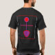 Front: Goddess logo over your heart. Back: Goddess song lyrics by Judith Laura surround Goddess logo she also created,combining Venus (female biological) symbol with yoni symbol.toThe song is from Judith Laura's book, She Lives! The Return of Our Great Mother, now in its Combined Third Edition. Words of song are:O MOTHER OF FIRE, COME RISE WITH THE SUN, O MOTHER OF WATER,COME FLOW IN EARTH ONE. O MOTHER OF EARTH BE WITH ME FROM BIRTH. O MOTHER OF AIR, YOUR BREATH BE MY PRAYER." Fire is located at bottom (south), water at left (west), air at right (east), earth at top (north)."