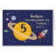 Turning 5 est hors de ce monde, surtout quand il est votre filleul! Bateau à fusée, planètes et étoiles remplissent à l'avant de la carte avec le message que vous comptez pour dire Joyeux Anniversaire!