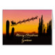 A Christmas card for your godson showing Santa flying over the desert. Lots of tall cactus are seen in silhouette. Wish a merry Christmas from the desert with a lovely sunset coloured card.