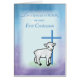 The sheep is in front of a blue cross on this Catholic congratulations card as you celebrate your Godson's First Confession.