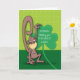 Wish your godson a shamrock full of luck on St. Patrick's Day! A cute monkey is showing you just how high that luck really is!