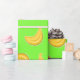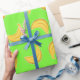 Bright, yellow bananas decorate this wrapping paper with a green background. Perfect for the person who drives you bananas.
