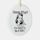 Retro style design ornament perfect for the future mom who wants to announce there's a baby on the way! This cute retro style design ornament features a female on a corded phone with text that reads Guess What? I'm Going To Be a Mom!