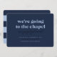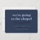 This modern navy blue save the date card features a mix of bold serif and casual script lettering. It has space for your names, the wedding date, and the wedding location.