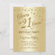 21st birthday party invitation. Elegant design with faux glitter gold and gold foil effect. Features script font and confetti. Cheers to 21 Years! Invite card perfect for a stylish women's bday bash.