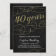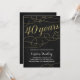 This black and gold 40th birthday party invitation features elegant flourishes, calligraphy that reads "40 years," faux gold foil, and a chic black background.
