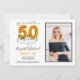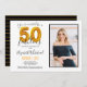 Celebrate your milestone birthday with this customizable 50th birthday invitation. The card features a place for you to upload your photo, add your name, the date, and location with RSVP information. The design is elegant with 50 in a gold balloon style font.