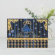 The dancers are waltzing among gold blue rhinestones hearts, gold glitter corner frames, and shiny gold stars. The background has a rich combination of blue theater curtains and gold damask pattern.