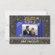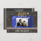 Chic Black and Gold Number with blue silk decorated with two blue Sapphire gems & gold confetti on an elegant black woven pattern.