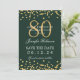 Gold 80th Birthday Save Date Confetti Green Invitation