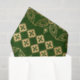 Rows of gold repeating abstract flower designs flanked by small repeating diamond designs in the same gold colour and all on a deep green background. Perfect for decoupage, crafts, or gift wrapping. Make sure to check out the matching gift bag!