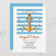 A nautical-theme invitation, in white and light blue stripes, a gold anchor and gold stars. (<a href='https://www.freepik.com/free-vector/golden-and-blue-anchor-background_1577789.htm'>Designed by Freepik</a>). <br/><br/>The card is easy to customize with your wording, font, font colour, paper shape options and choice of six paper types.<br/><br/>Not exactly what you're looking for? All our products can be custom designed to meet your needs at no extra charge.<br/><br/>Simply contact us at heartfelthelper@gmail.com.<br/><br/>Coordinating products available: Just ask us!