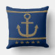 gold anchor on navy blue background throw pillow