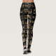 These cool and unique custom leggings feature an ancient Egypt art theme. A pattern of gold Egyptian hieroglyphics is printed over a black background,