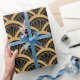 Gold and Black Art Deco Fan Flower Pattern Wrapping Paper