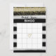 Bridal shower bingo card with faux gold glitter design and black stripes watercolor background.