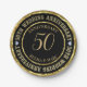 Elegant 50th wedding anniversary commemorative plate with customizable text. Metallic gold and black. White diamonds accents.