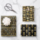 Gold and Black Floral Art Deco Patterns Wrapping Paper Sheet