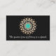 A essential card for professions who believe in growing their business by word of mouth. This elegant lotus flower illustration has a beautiful fusion of vintage, modern and new age. Mandala inspired faux gold leaf rosette medallion is perfectly accented by black background. Turquoise blue centre.*Please note that gold foil and wood surfaces are digital images - not the real thing. An artistic and unique business card ideal for those in the healing arts, landscape, interior design, beauty, fashion or jewellery.