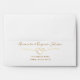 Simple, elegant, chic white wedding invitation 5x7 envelope with return address, gold rope heart and modern abstract agate marble black inside.