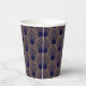 Gold and blue art deco pattern paper cups. A gold on blue art deco inspired motif. 1920s Gatsby style.