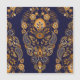Gold and blue flourish in a rich ethnic-inspired pattern.