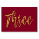 Gold and Burgundy Maroon Elegant Typography Table Number Three.