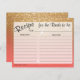 Featuring gold and coral bride to be recipe card ready for you to personalize or leave as is. ✔NOTE: ONLY CHANGE THE TEMPLATE AREAS NEEDED! 😀 If needed, you can remove the text and start fresh adding whatever text and font you like. 📌If you need further customization, please click the "Click to Customize further" or "Customize or Edit Design" button and use our design tool to resize, rotate, change text colour, add text and so much more. ⭐This Product is 100% Customizable. Graphics and / or text can be added, deleted, moved, resized, changed around, rotated, etc... ⭐99% of my designs in my store are done in layers. This makes it easy for you to resize and move the graphics and text around so that it will fit each product perfectly. 📌 (Please be sure to resize or move graphics if needed before ordering) You can also "TRANSFER DESIGN" on other Zazzle products and adjust the design to fit most of Zazzle items. (button is down on the right side of the page) This design is made with high resolution vector and/or digital graphics for a professional print. 📌NOTE: (THIS IS A PRINT. All #Zazzlemade product designs are "prints" unless otherwise stated under "About This Product" on the left side of this page) The design will be printed "EXACTLY" like you see it on the screen and on the product...so please make sure when you do your changes on the resizing of any of the graphics or text that it fits in the areas correctly and that your spelling and wording is how you like it to be in size, colour and font. If you have any questions about the "DESIGN ONLY" or need help please contact me at ✉ siggyscott@comcast.net or visit my store link: https://www.zazzle.com/store/designsbydonnasiggy (Copy and Paste) I'll be happy to help. 📌 ALL OTHER QUESTIONS (shipping, refund, the printing, the product, etc...) please contact Zazzle or the Maker ⭐DIRECTLY⭐. Thank you for the support and stopping by my store - DesignsbyDonnaSiggy. © Donna Siegrist ⭐⭐⭐ ZAZZLE promises 100% satisfaction. If you don't absolutely love it, Zazzle will take it back! ⭐⭐⭐ 1-888-8ZAZZLE (1-888-892-9953) Phone hours: Mon - Fri: 9AM - 5PM PT (12PM - 8PM ET)