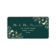 Enhance your wedding stationery with these elegant emerald green return address labels. Adorned with gold flowers and a simple calligraphy script, these chic, vintage-inspired labels add a luxurious, timeless touch to your envelopes, making a memorable first impression for your guests.