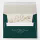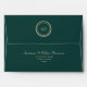 Elegant and modern emerald green wedding envelope, featuring a chic design with a return address, monogram at the top flap and a romantic love birds motif. Perfectly crafted for a luxurious touch, this envelope adds a sophisticated and personalized detail to your wedding invitations.